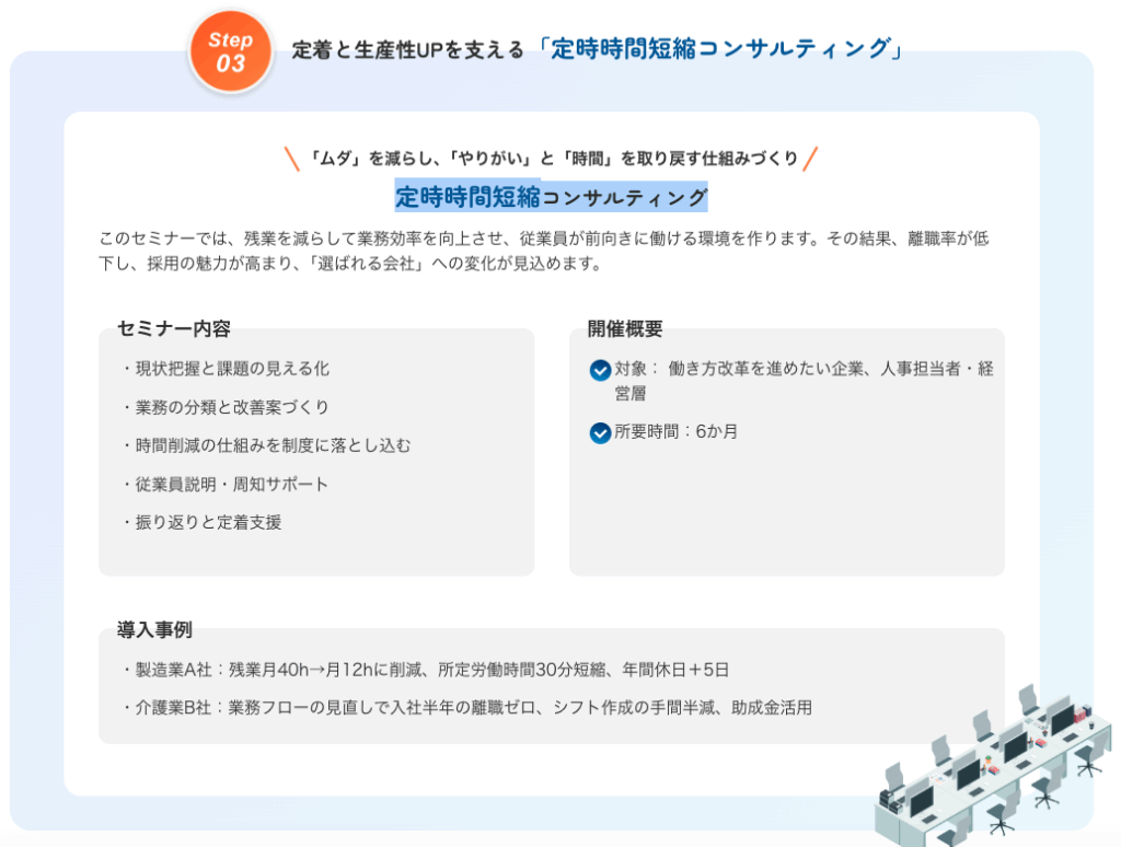 定時時間短縮コンサルの特徴